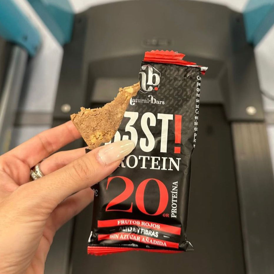 Ingredientes: pasta de maní, fibra de achicoria, pasta de dátil, Crispín de soja proteico, proteína de suero de leche, proteína de soja, arándanos rojos, simil chocolate semiamargo y aromatizante.